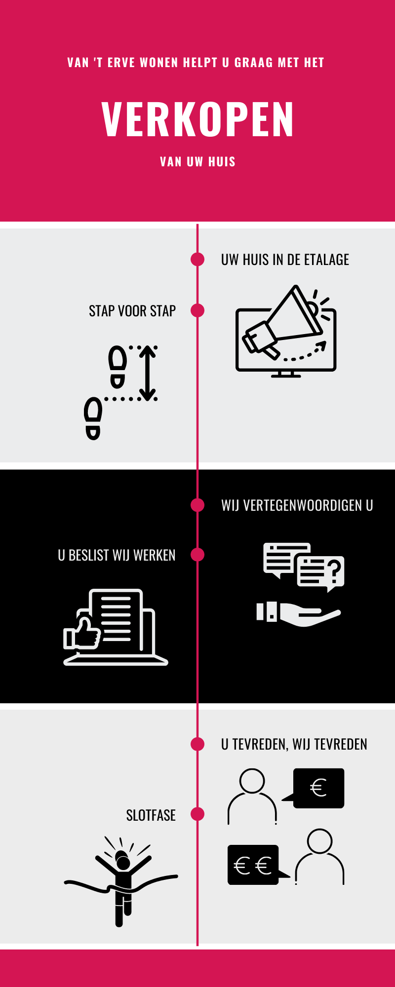 U heeft besloten uw huis te verkopen. En nu? Waar te beginnen? Wat ons betreft begint het met een afspraak, een kennismaking, in uw huis. We bekijken het huis uitgebreid, bespreken samen de uitgangspunten, de plannen, de te nemen stappen en de te verwachten verkoopkosten. Of u vervolgens ons als verkoopmakelaar kiest, dat laten wij aan u over.