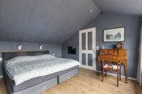 De trap op de overloop strekt zich verder uit. Zo gaat u door naar de netjes afgewerkte zolder. Door de brede dakkapel is ook hier prettig veel licht en ruimte. Dat biedt mogelijkheden voor bijvoorbeeld een werkplek op de voorzolder, terwijl er nog steeds ruimte overblijft als standplaats voor de cv-ketel en om een berging in te richten. Achter de tussenwand op deze zolderverdieping vindt u een royale (vierde!) slaapkamer met uitzicht over de huizenblokken en de bomen van de buurt.