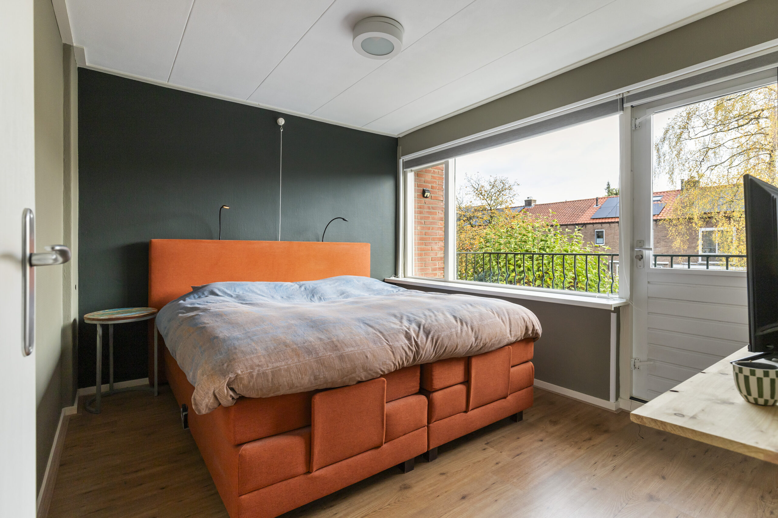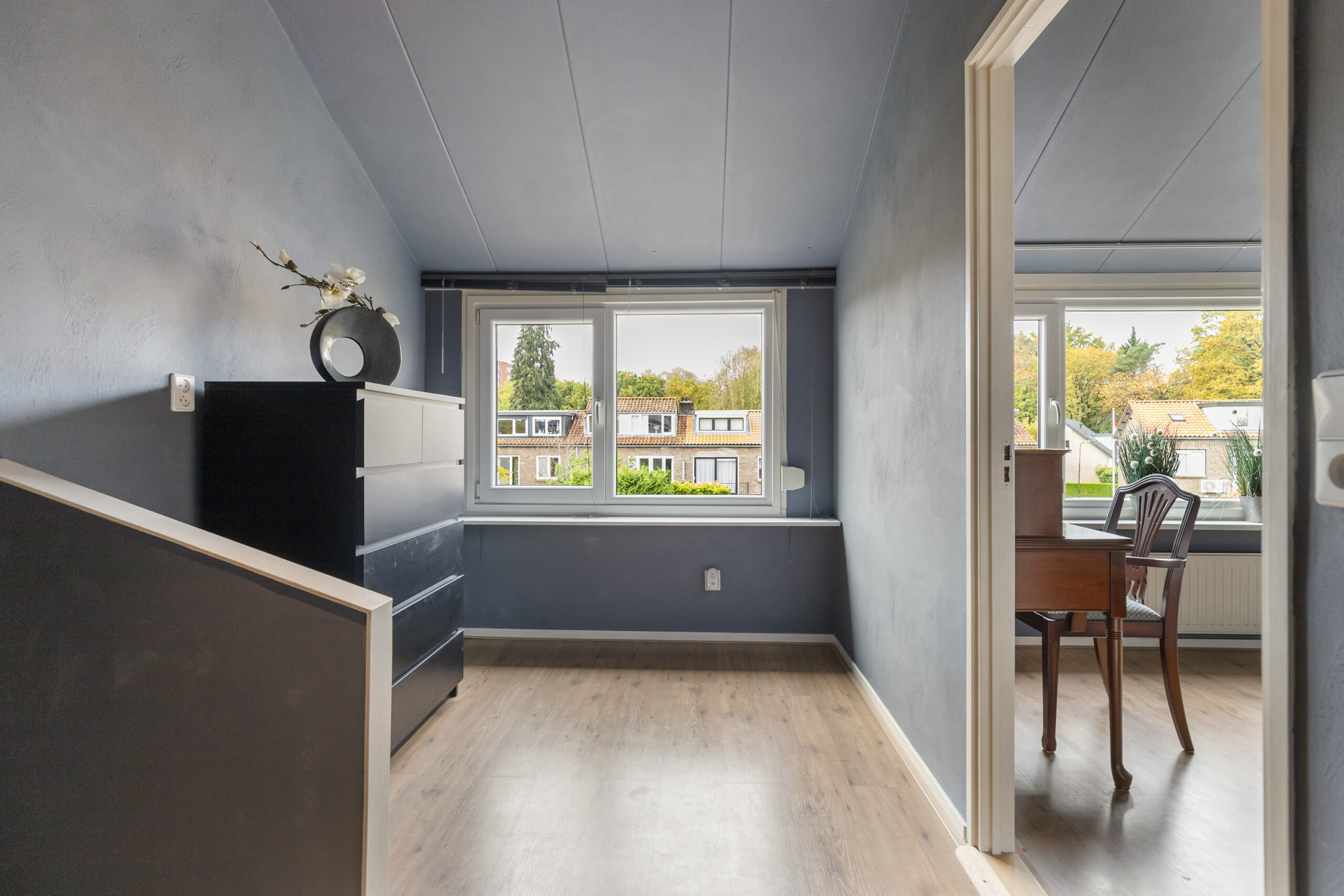 De trap op de overloop strekt zich verder uit. Zo gaat u door naar de netjes afgewerkte zolder. Door de brede dakkapel is ook hier prettig veel licht en ruimte. Dat biedt mogelijkheden voor bijvoorbeeld een werkplek op de voorzolder, terwijl er nog steeds ruimte overblijft als standplaats voor de cv-ketel en om een berging in te richten. Achter de tussenwand op deze zolderverdieping vindt u een royale (vierde!) slaapkamer met uitzicht over de huizenblokken en de bomen van de buurt.