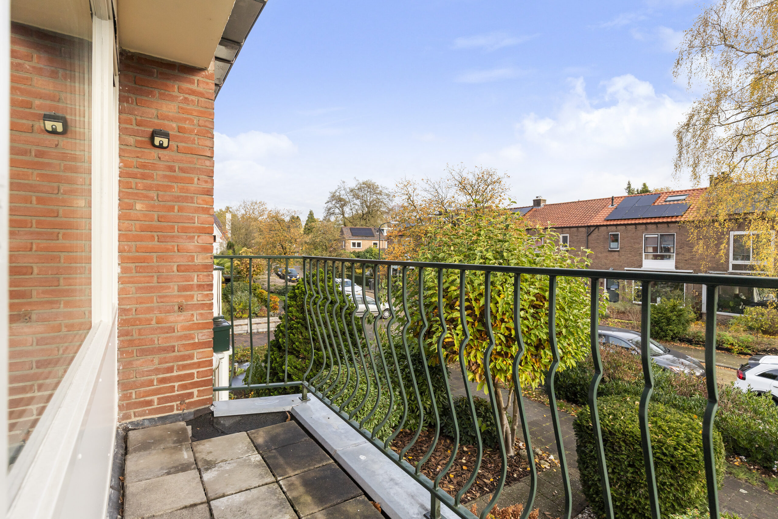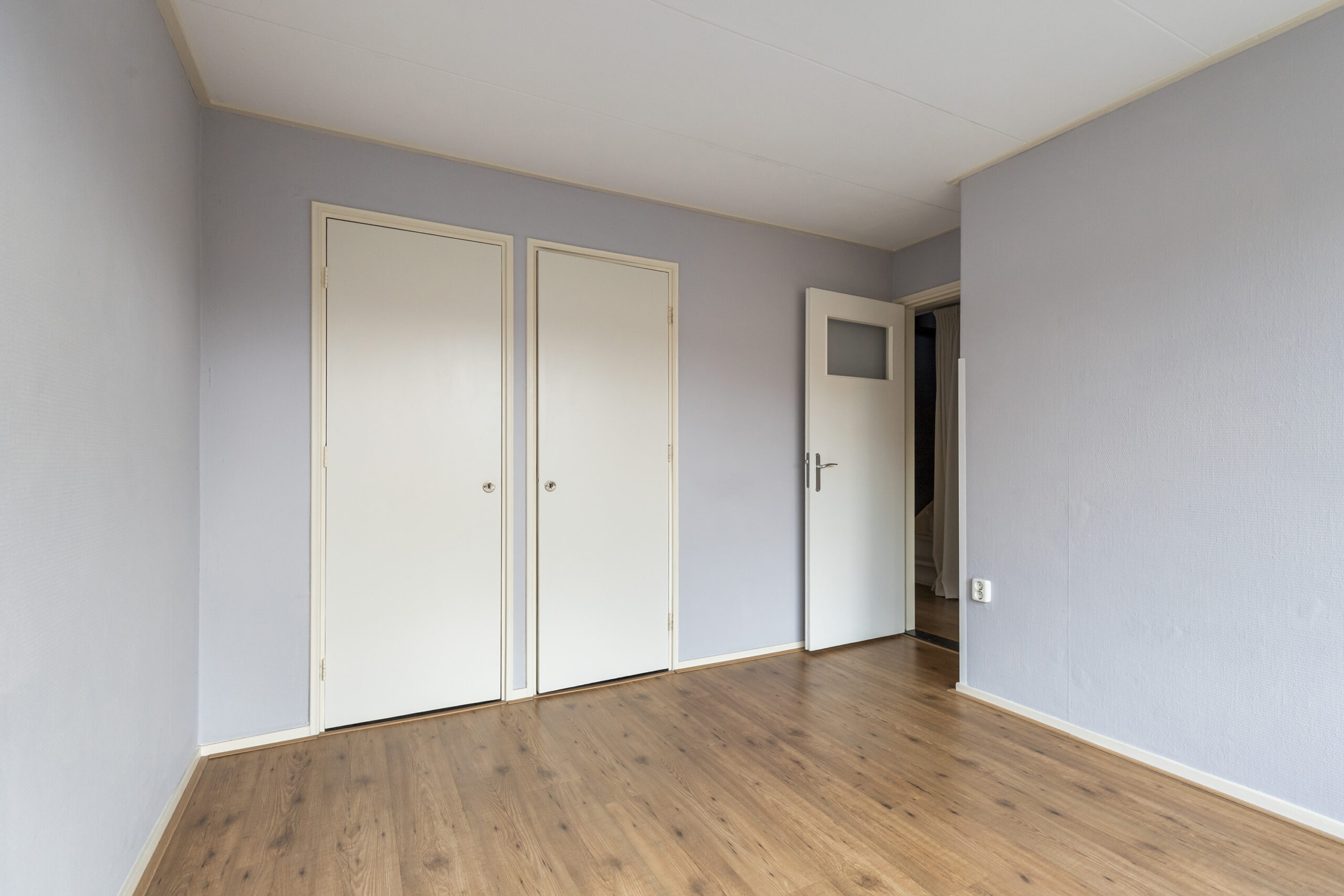 Dan blijven er nog vier deuren over op deze overloop. Drie daarvan zijn van kamers; te beginnen met twee ruime slaapkamers met elk twee vaste kasten. De kamer aan de voorkant van het huis heeft bovendien een balkon met ver zicht de laan in. De derde slaapkamer is van bescheidener formaat, maar absoluut ruim genoeg om als slaapkamer te gebruiken. De vierde deur op de overloop is die van nóg een vaste kast.