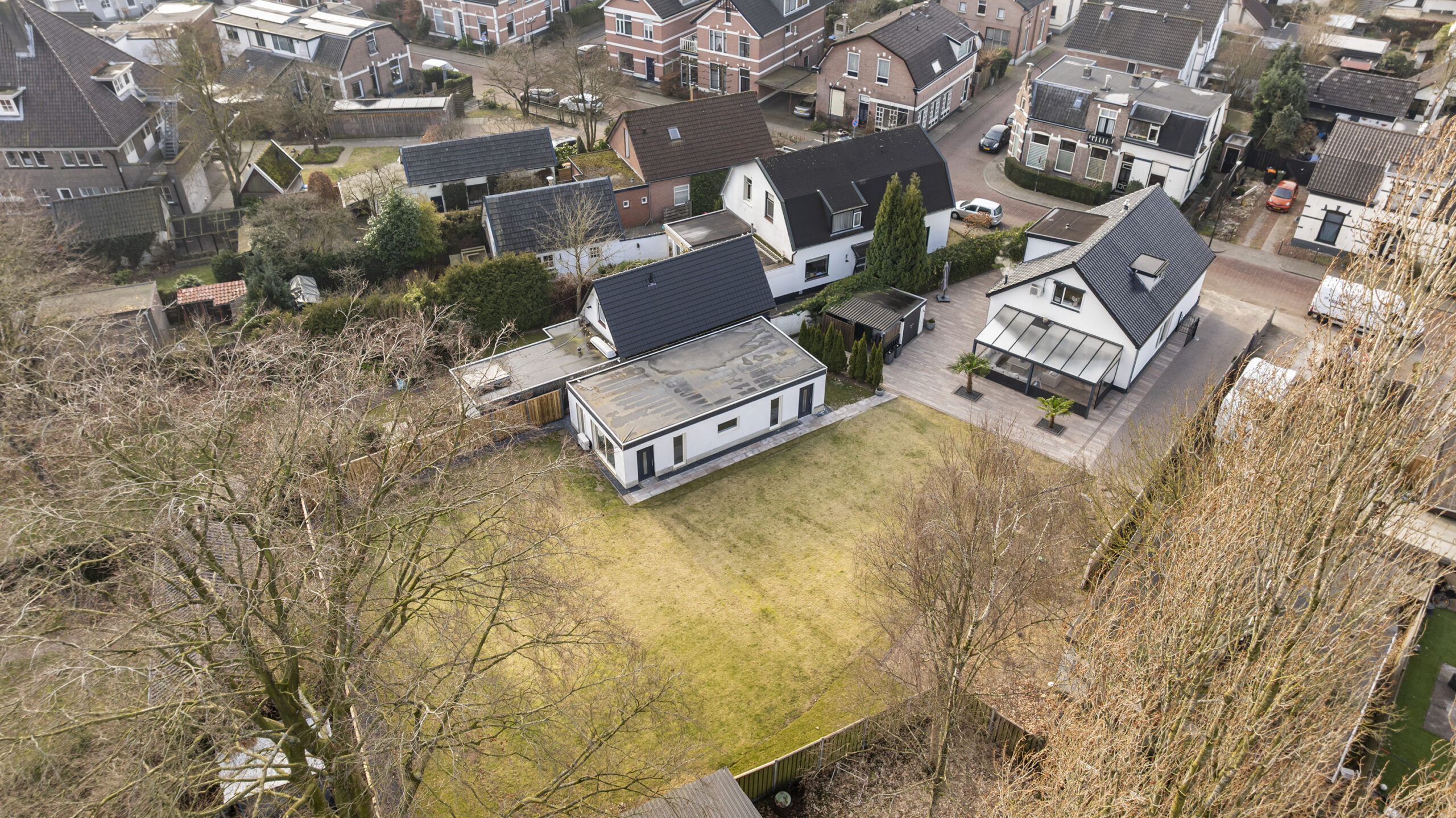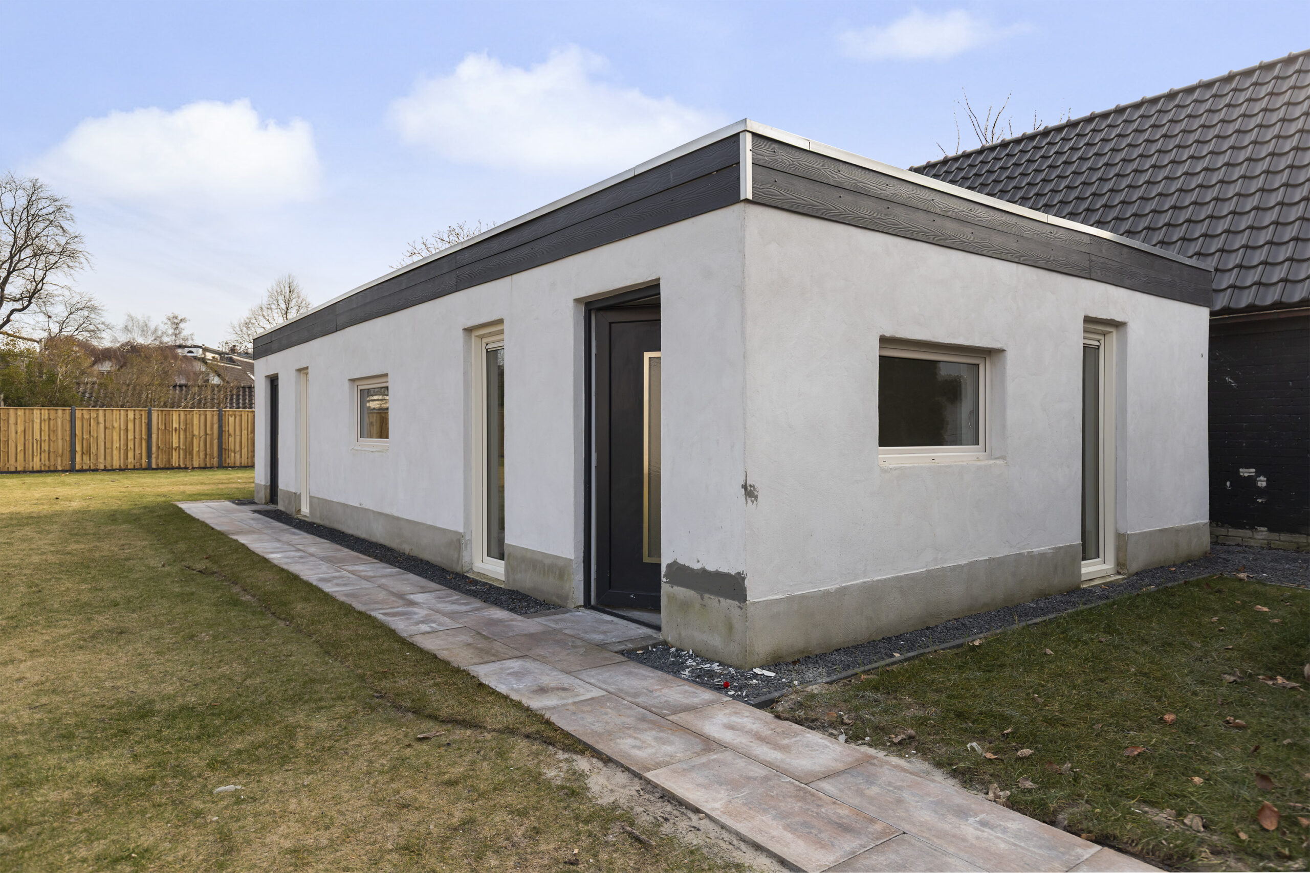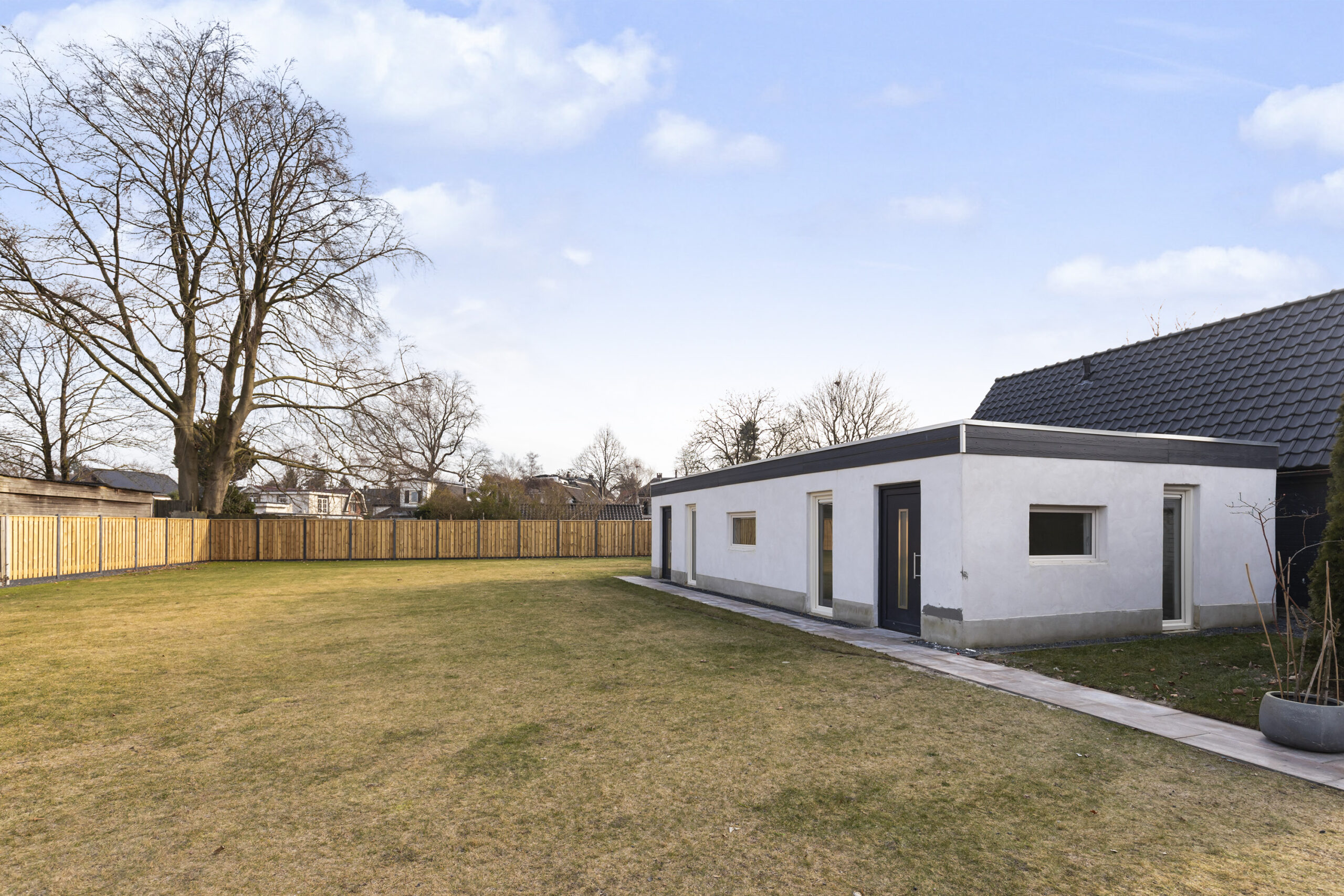 De uitgesproken riante tuin is omsloten door solide schuttingen. Met enkel een grasveld nodigt deze ongetwijfeld uit tot creatieve tuinplannen. Uiteraard neemt u in die plannen het bijgebouw mee: een grote ruimte vol mogelijkheden, zoals een jeugdhonk, kantoor of praktijk aan huis.