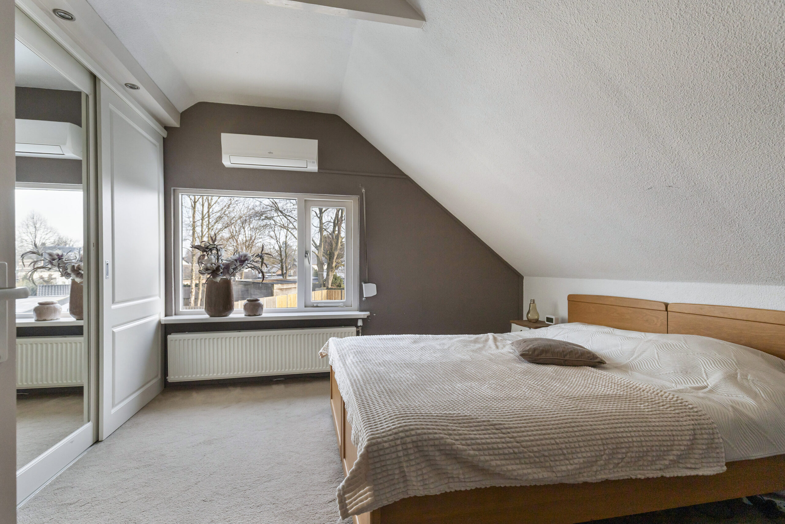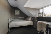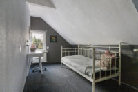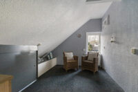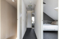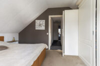 De deur links van u leidt naar de centrale overloop met in het plafond de vlizotrap naar de bergzolder. Op deze verdieping zijn vier(!) kamers, elk van een verschillend formaat, maar groot genoeg om te gebruiken als slaapkamers. Twee van de slaapkamers hebben bergruimten achter knieschotten, één slaapkamer heeft extra volume, licht en charme van de dakkapel en de grootste kamer heeft een vaste (schuif)kast en airconditioning als extra’s.