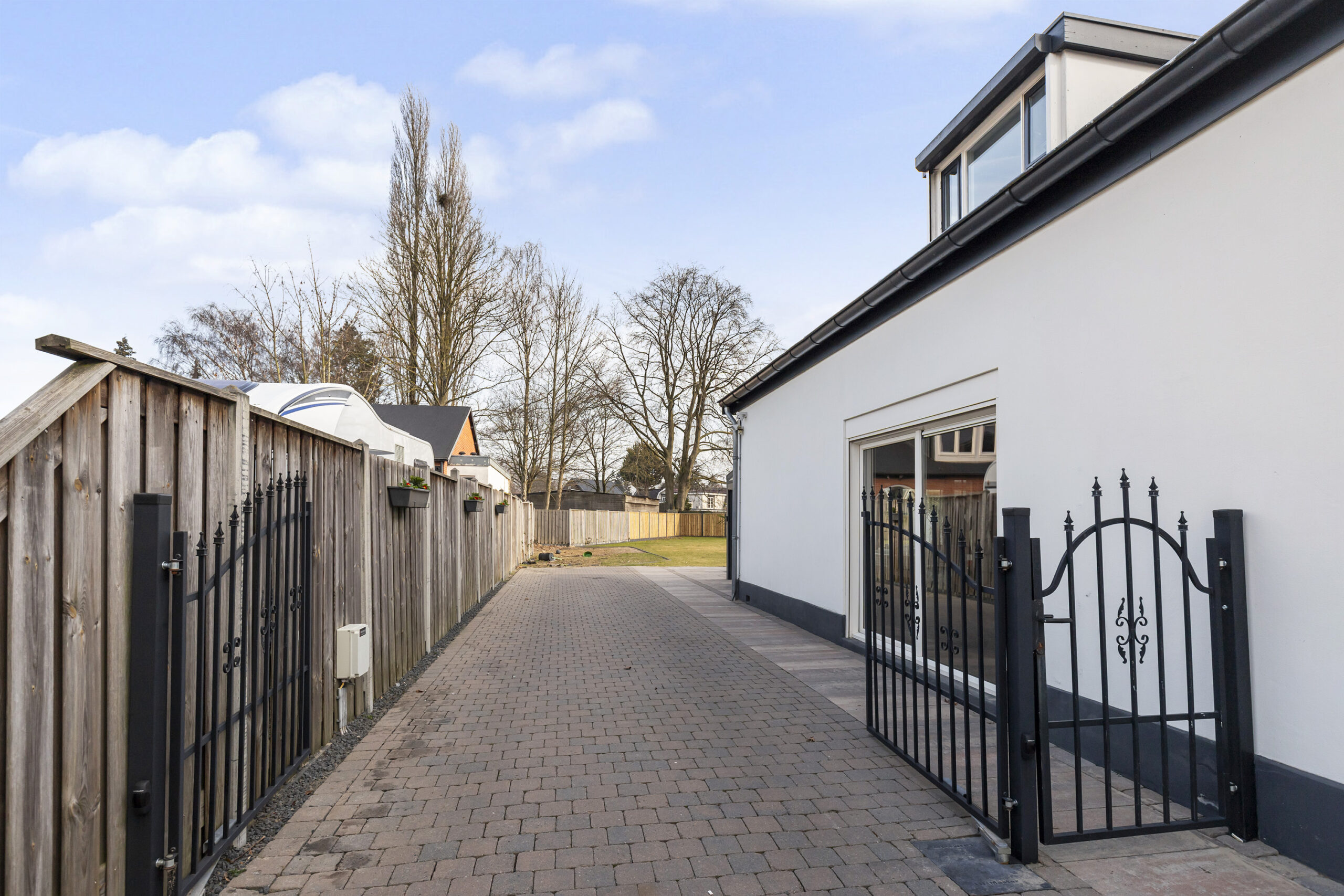 Misschien valt het niet direct op, maar naast het huis staat een berging voor (bijvoorbeeld) uw fietsen en/of tuingereedschap. Aangebouwd is een handige overkapping. Ook is aan deze kant van het huis een besloten terras. Via de oprit aan de andere kant van het huis is de achtertuin goed bereikbaar. Zo’n oprit is ook prettig voor het parkeren van uw auto(‘s).