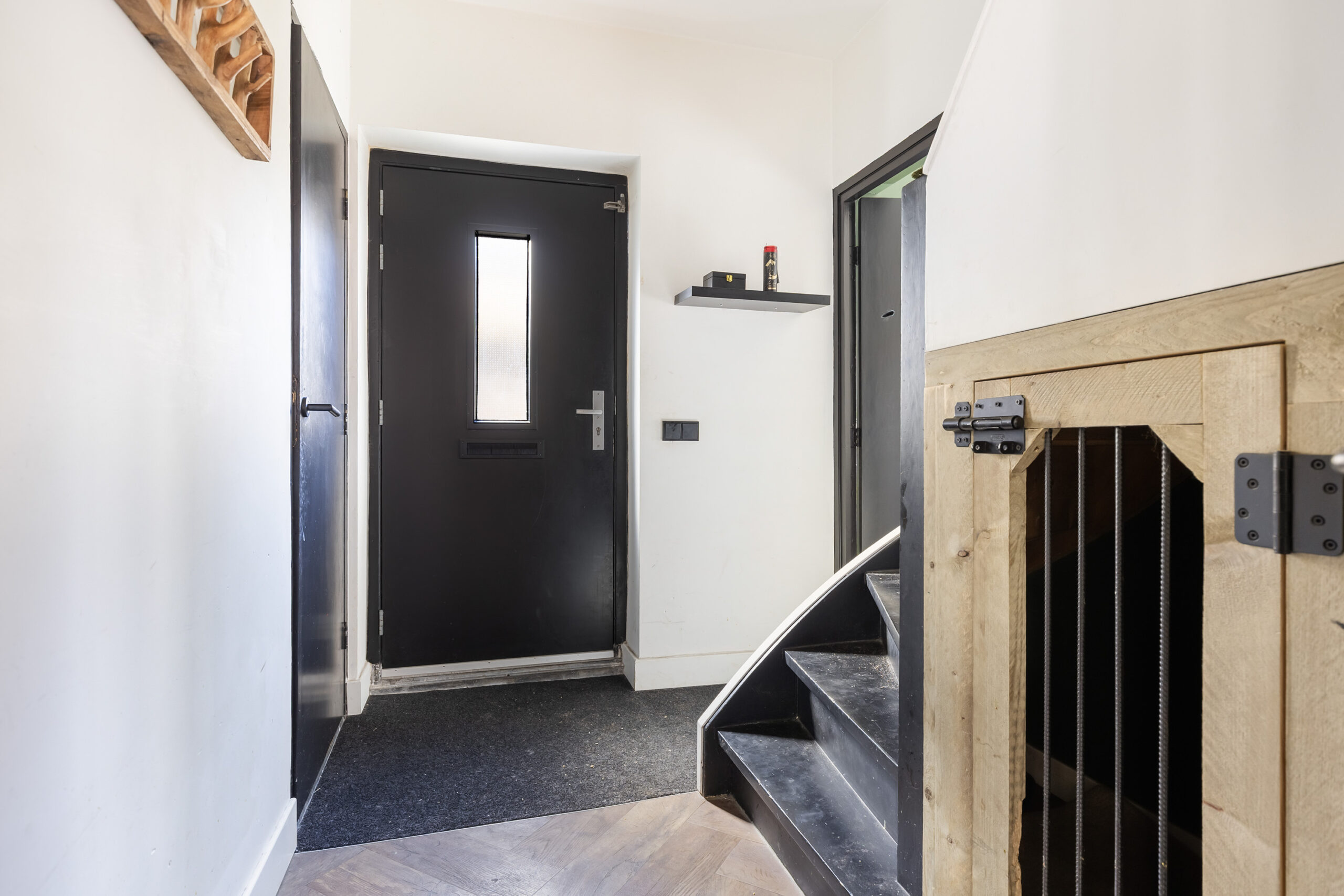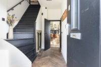 In deze oud-Apeldoornse weg valt dit huis op door haar moderne voorkomen. Met dubbel glas, spouwmuurisolatie en dakisolatie is het in haar basis ook helemaal van deze tijd. Loopt u langszij over het pad? Dan vindt u daar de voordeur. Hier komt u binnen in een sfeervolle hal, waar de gelakte houten trap een knik maakt.