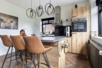 Komt u verder! Met een spoeleiland, aanrecht, fornuis en een barretje is in deze keuken alle ruimte voor functionaliteit en gezelligheid. De ramen laten prettig veel licht binnen en u heeft hiervandaan vrij zicht naar buiten. Bovendien is hier de deur naar de tuin. En inderdaad, deze leefkeuken is voorzien van moderne gemakken zoals een inductiekookplaat, afzuigkap, vaatwasser, oven en een koelkast. U heeft bovendien het gemak van een grote vaste kast.